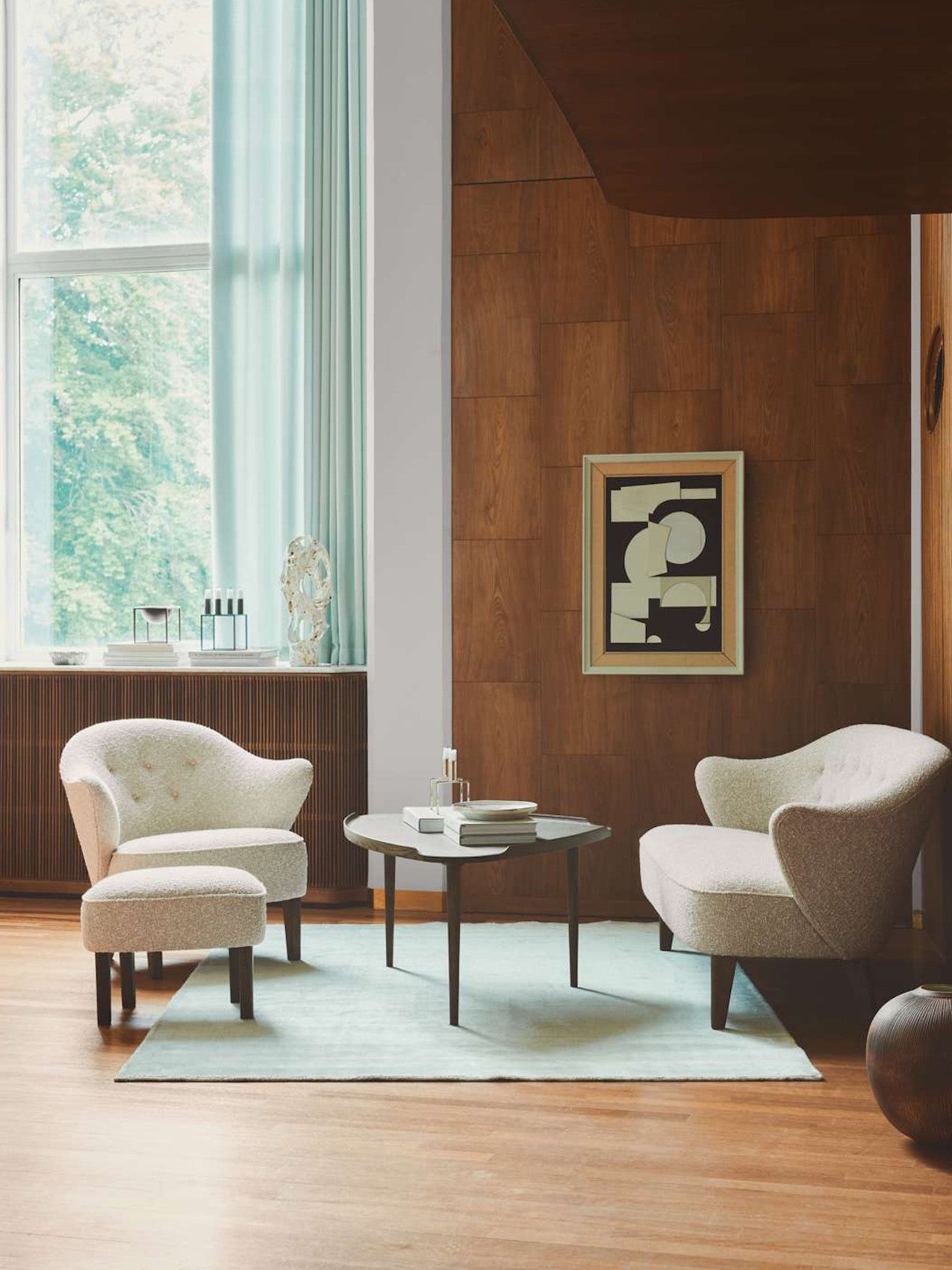 The charming little easy chair is named after Flemming and Mogens Lassen's mother, the artist Ingeborg Winding. Ingeborg is a perfect match for the new sofa, called Vilhelm. The sofa is named after the brothers' father Hans Vilhelm Lassen who was a decorative artist. It's a beautiful reunion of Vilhelm and Ingeborg.