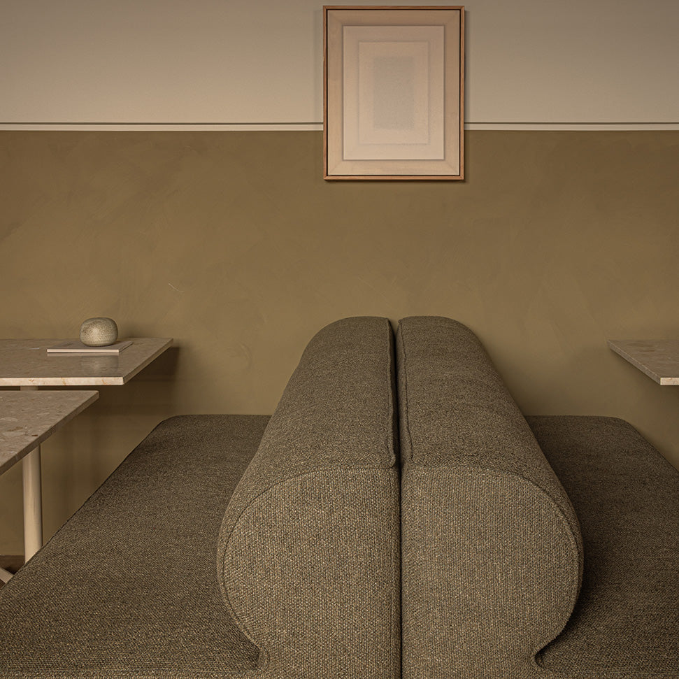 Serving the same function as a sofa, the Eave Dining Sofa is a banquette bench with a difference. A fusion of functions, the upholstered bench in a soft and minimalist design brings a homely aesthetic to spaces, as a substitute for a bench or traditional dining chairs. Set on metal legs for a light expression and easy access to the floor for cleaning, the characterful design comes in a range of height, length, depth and upholstery options.