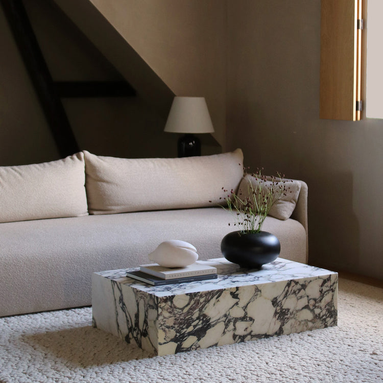 The Plinth Collection is as versatile as it is timeless. The collection’s marble coffee table designs serve the dual purpose of being beautiful, sculptural pieces in their own right and highlighting whatever objects rest upon them. Available five sizes, the low rectangular table is ideal as a statement coffee table.