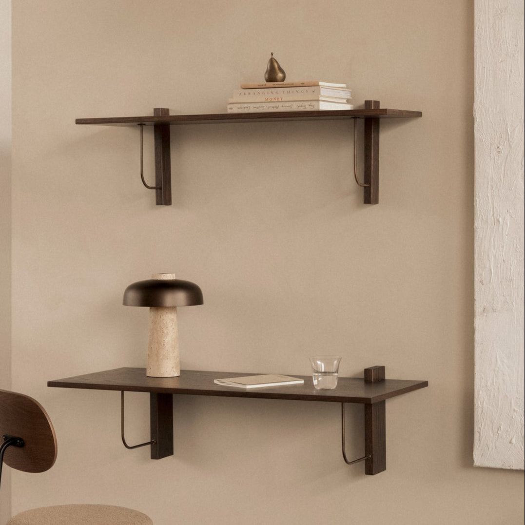Taking its name and design cues from architectural weight-bearing brackets traditionally made from stone or wood, the Corbel Collection of modernist wall-mounted shelves and desks combines contrasting natural materials to arresting effect. Designed for versatility, both shelves and desk serve various purposes in living and working areas with their sense of structural elegance, adaptable configurations and timeless appeal.