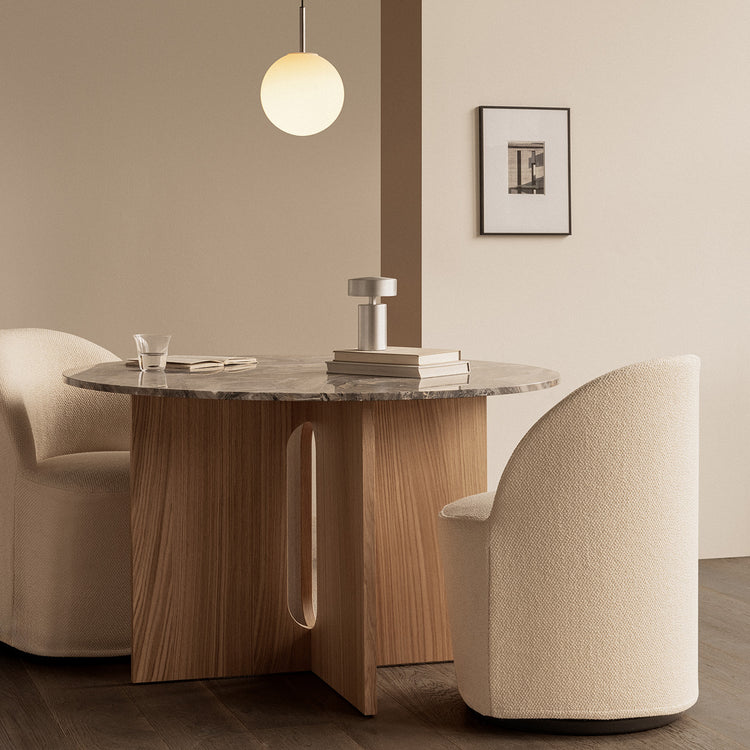 Efficient in their use of space, Audo’s dining room tables and modern kitchen tables bring functionality and intimacy to spaces. Carefully crafted from natural materials including marble, linoleum and wood, the visually appealing designs include round marble top dining tables and rectangular wooden dining tables. Details such as chamfered edges and tapered legs add to the sense of refinement.