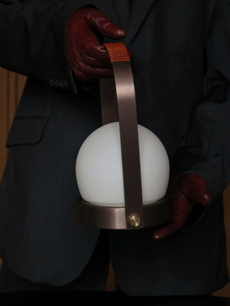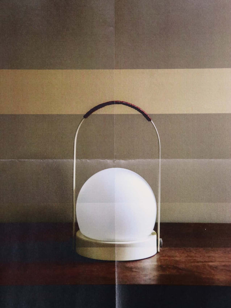 The latest evolution introduces six carefully considered finishes: Black, Ivory, Golden Brown, Linen Blue, Brushed Aluminum and Bronzed Brass. Each version features leather cord wrapped around the handle, adding warmth and tactility while maintaining the lamp’s familiar form.