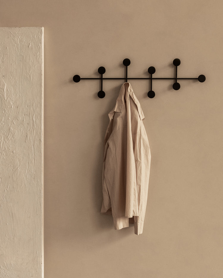The coat hanger is a simple yet sophisticated hanging system for coats, clothes or accessories and is easily fixed to the wall, with all screws hidden to compliment the minimalistic and clean aesthetic.