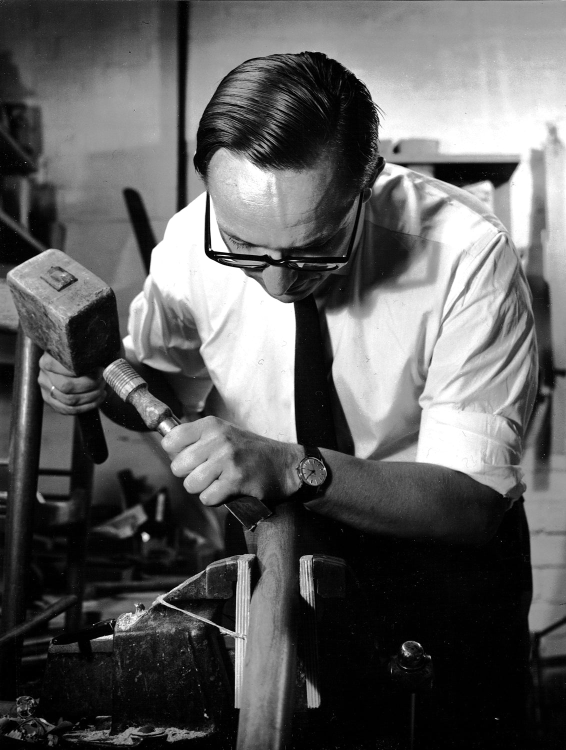 The Tired Man was launched at the Copenhagen Cabinetmakers’ Guild Exhibition in 1935 and has since become an icon of Danish design. The epitome of craftsmanship and comfort, the characteristically curved armchair was designed by Flemming Lassen to feel “as warm and snug as a polar bear cub in the arms of its mother.”