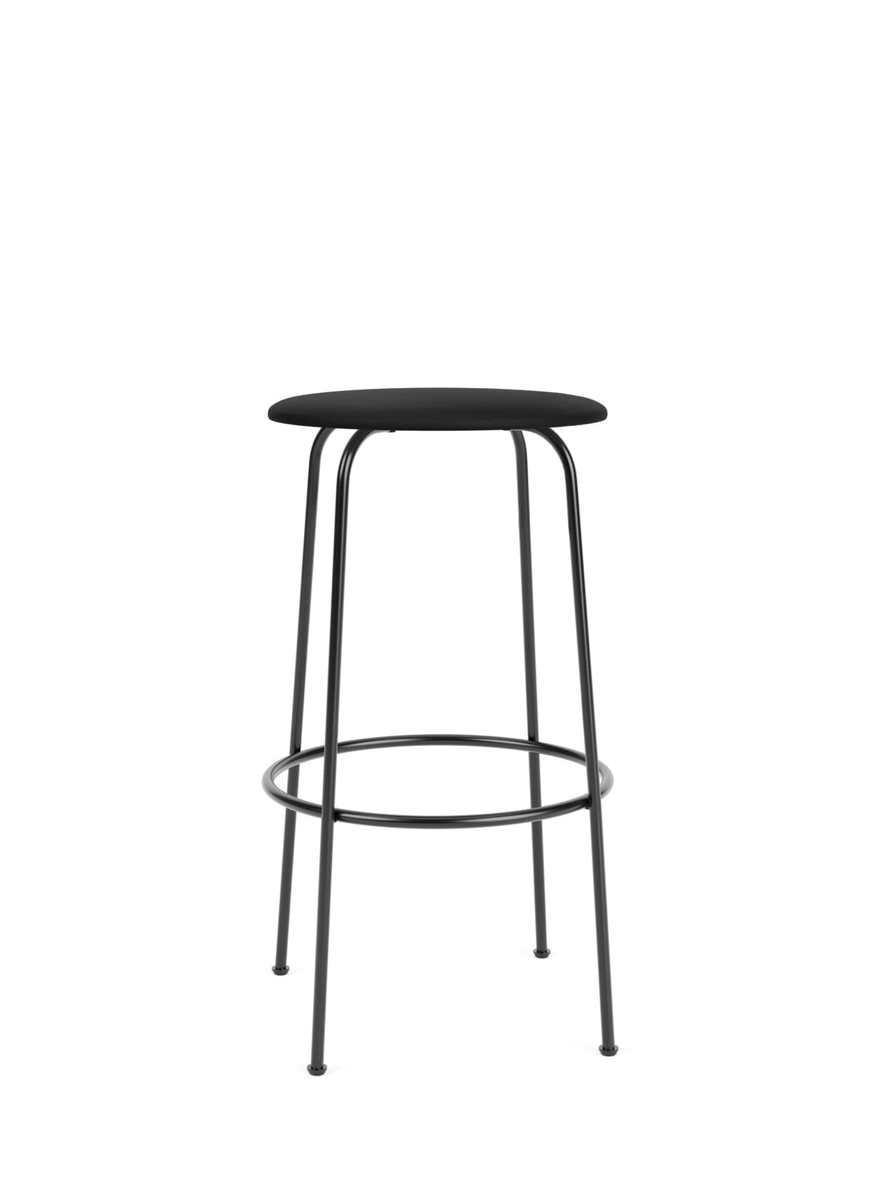 With its characteristic clean lines and sturdy base in tubular black powder-coated steel, tethered with cross bars for support, the Afteroom Stool comes in three heights, making it easy to slide up to a bar, counter or table. Boasting a high standard of craftsmanship and durability for long-lasting use, in customizable upholstery the stool brings added comfort, character and tactility to interiors while its sleek, minimalist profile ensures it fits seamlessly into any setting.