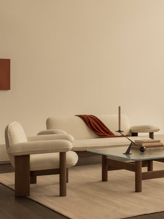 Scandinavian mid-century design aesthetics and Brazilian Modernism meet on the low-lying Brasilia Lounge Chair, designed for Audo by Anderssen & Voll. The luxurious armchair-lounge chair hybrid offers unparalleled sitting comfort thanks to its robust frame and soft upholstery. Characterized by its stout and sturdy legs, made using traditional joinery techniques, and exaggerated armrests and cushioning seat and backrest, upholstered in a range of soft fabrics, it creates a sense of comfort and ease in any setting.