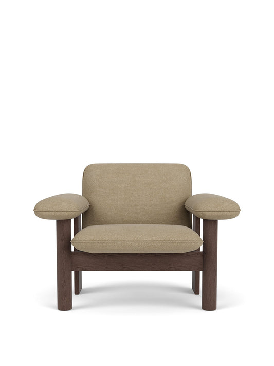 Scandinavian mid-century design aesthetics and Brazilian Modernism meet on the low-lying Brasilia Lounge Chair, designed for Audo by Anderssen & Voll. The luxurious armchair-lounge chair hybrid offers unparalleled sitting comfort thanks to its robust frame and soft upholstery. Characterized by its stout and sturdy legs, made using traditional joinery techniques, and exaggerated armrests and cushioning seat and backrest, upholstered in a range of soft fabrics, it creates a sense of comfort and ease in any setting.
