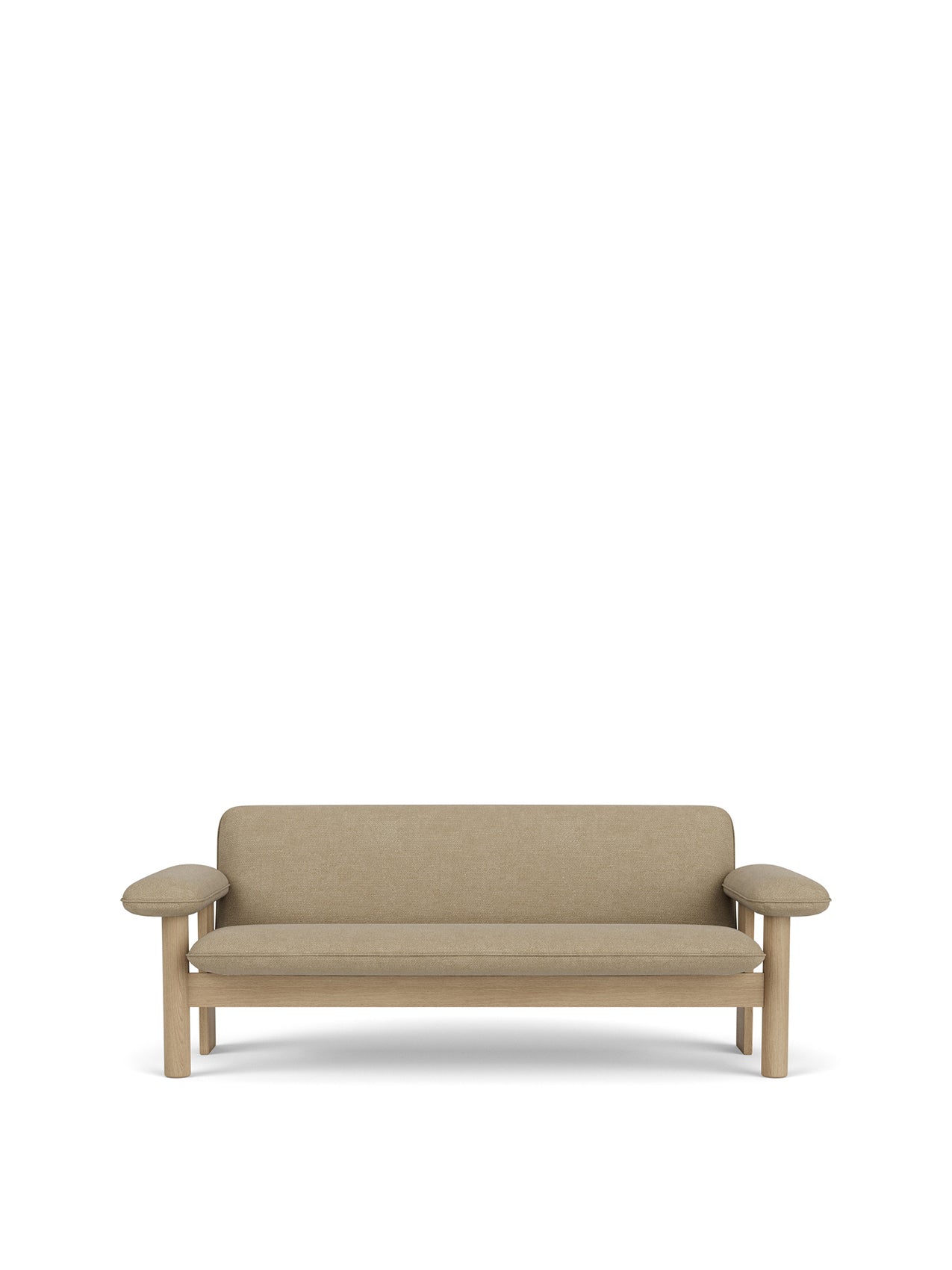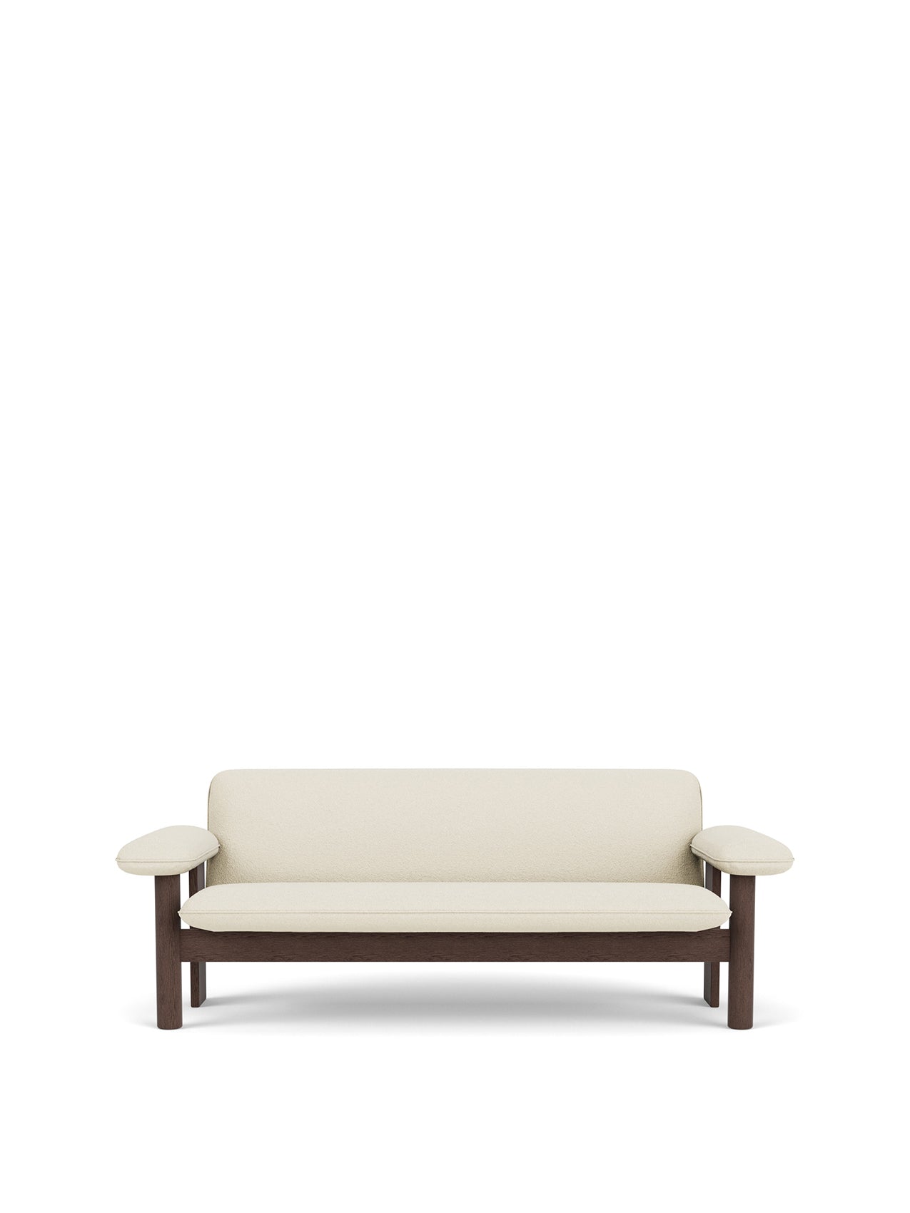 The Brasilia Sofa is a harmonious blend of Scandinavian mid-century aesthetics and Brazilian modernism. Large enough for reclining with ease yet small enough to fit compact spaces, its bold and inviting form comprises a solid wood frame with rounded front legs, exaggerated armrests and plush cushioning. Offered in three wood finishes and a comprehensive range of upholstery options, the low-back, two-seater design exudes a sense of relaxation and sophistication as a standalone piece or a part of the wider Brasilia collection.