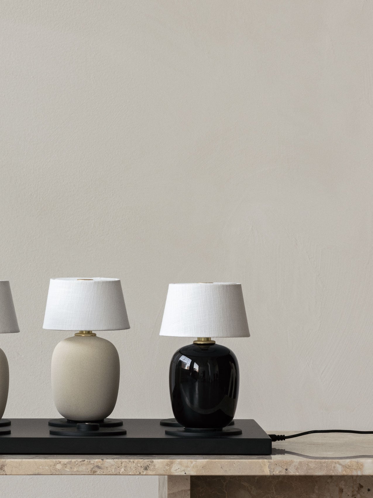 Lamp models that fit charging trolley entirely: Torso portable lamp, JWDA Portable Lamp, Column Lamp, Hashira Portable Lamp, Carrie Portable Lamp