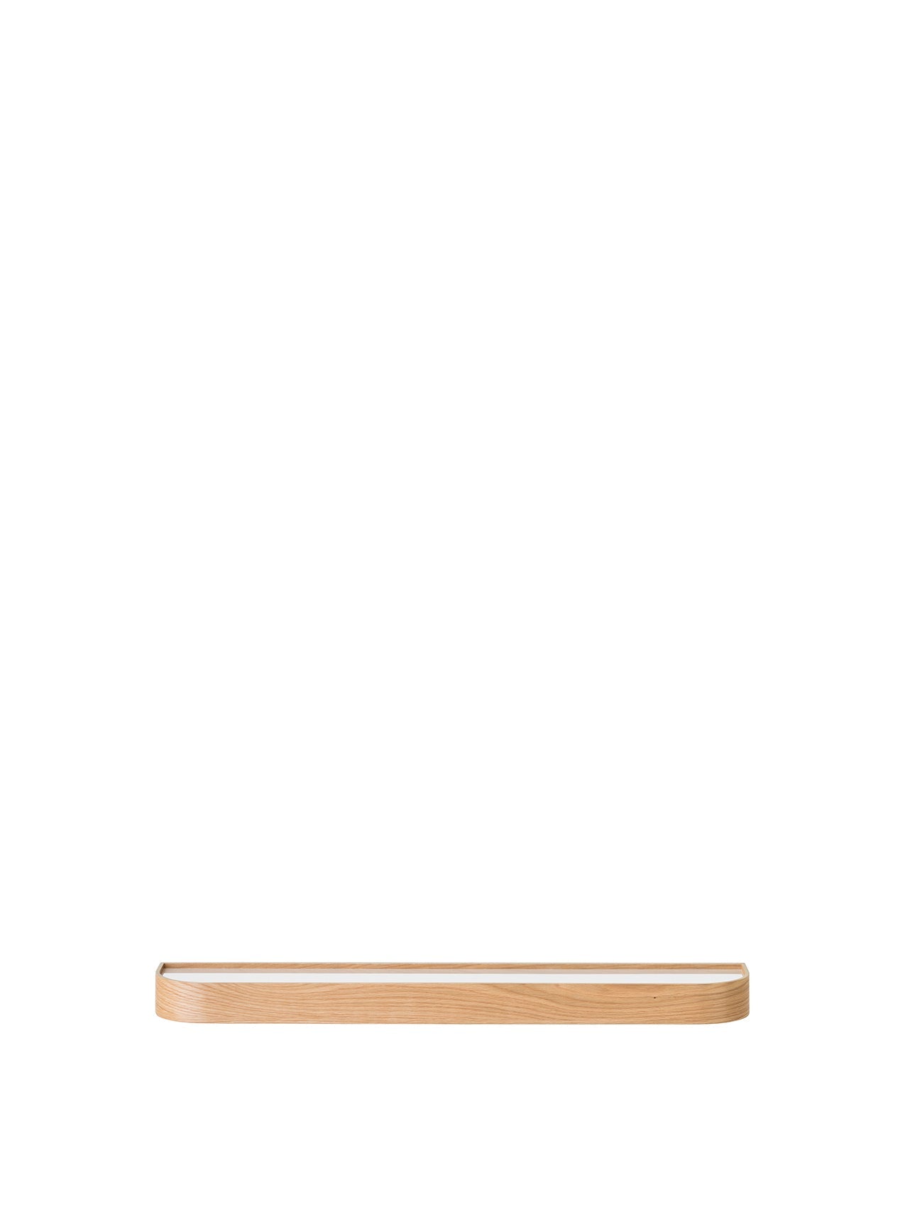 The multifunctional, space-saving Epoch Shelf with Rack is, as its name suggests, both a shelf and a hanging rail in one design. Shaped from steam bent oak veneer in a natural or dark stained finish, concealed within the design are 11 wooden pegs for hanging clothes, bags and accessories in a hallway, bedroom or bathroom. The top features a recessed ledge for storing or displaying items. Hang alone or in rows of multiples.
