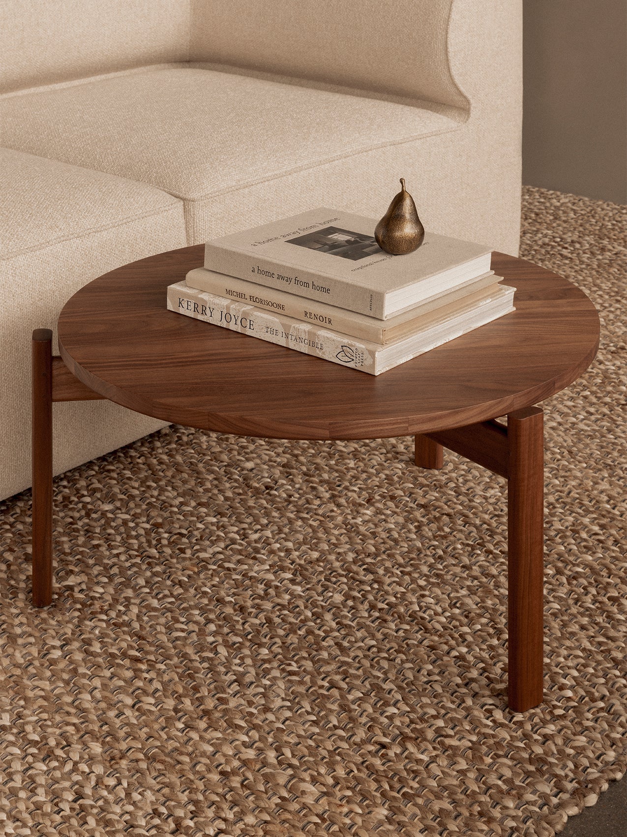 Whether playing host to drinks or home to the remote control or of-the-moment reads, the versatile Passage Lounge Table brings a feeling of soft serenity to spaces thanks to its calming round shape and solid wood construction. Offered in lacquered walnut or FSC™-certified oak, each piece displays unique grain patterns inherent to the high-quality hardwoods. Cleverly designed as a flatpack, self-assembly kit, inviting you to engage with the design, it is offered in three sizes, allowing you to pair multiples together in a nest-like formation.