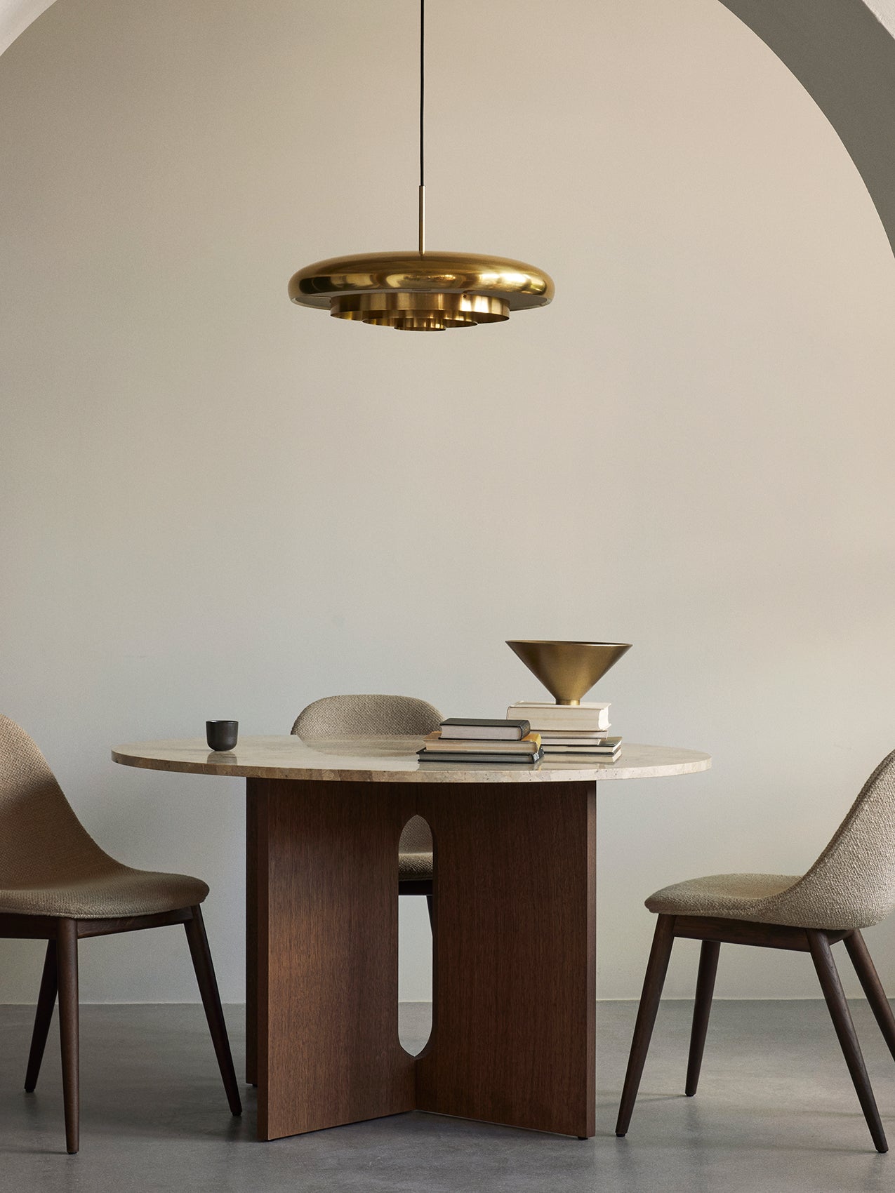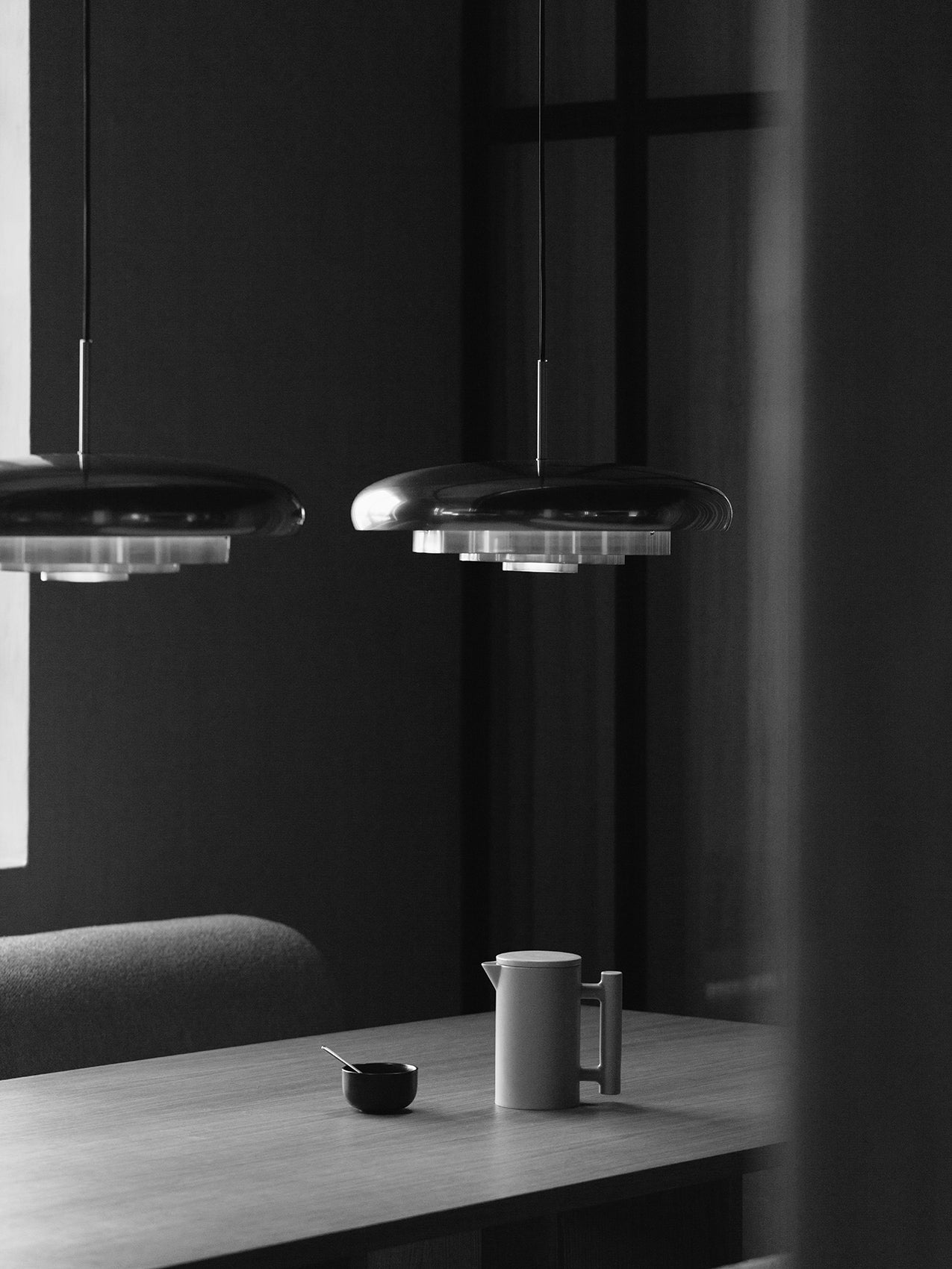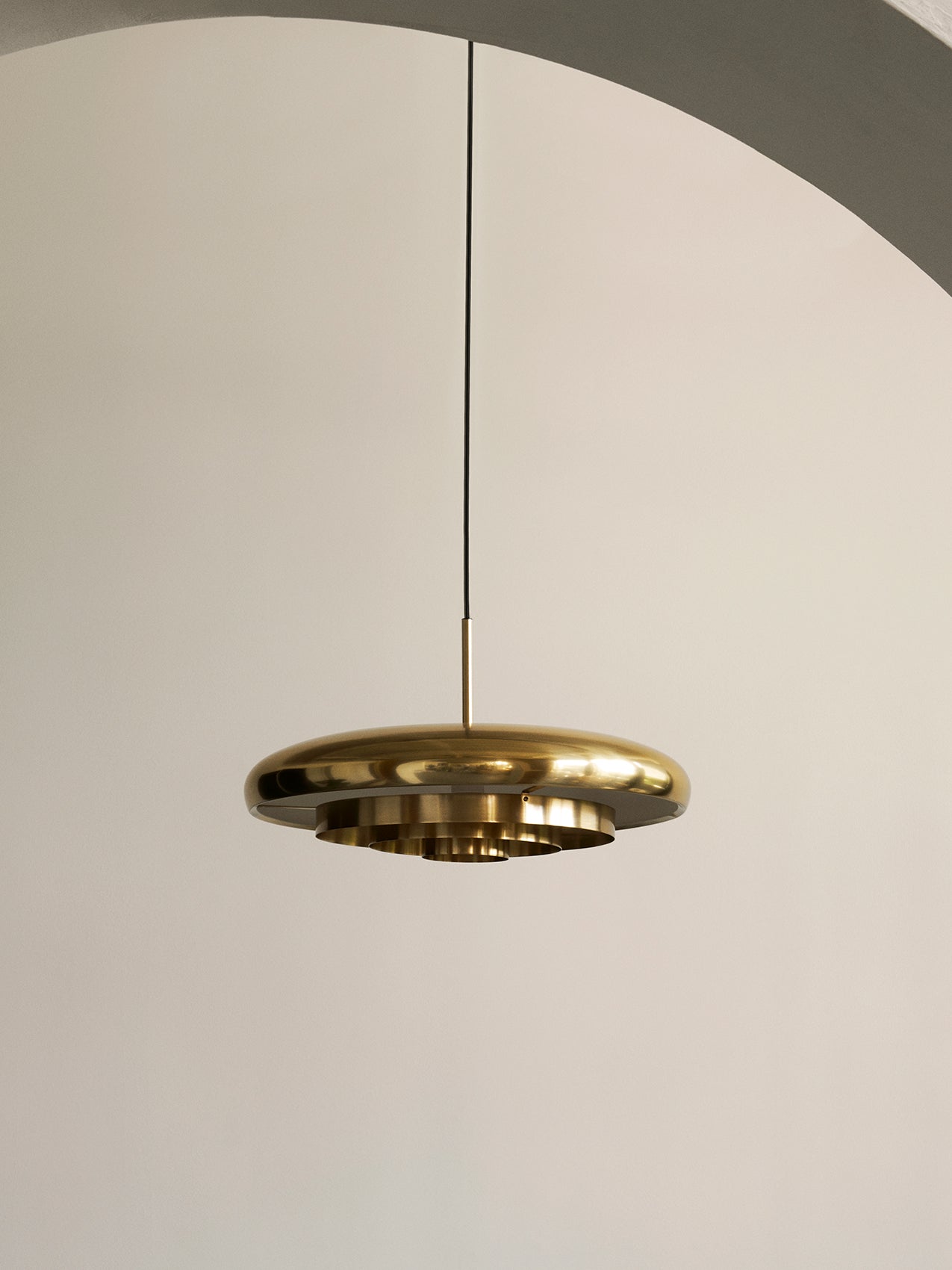 Designed in the 1950s by Alf Svensson and Yngvar Sandström, Resonant is as relevant today as ever. The mid-century pendant lamp is both striking and simple, shaped from polished brass into four concentric shades that direct glare-free light downwards. Well suited to any space, its name alludes to a visual interplay between light and sound, reflecting off the shiny surface and reverberating across a room.