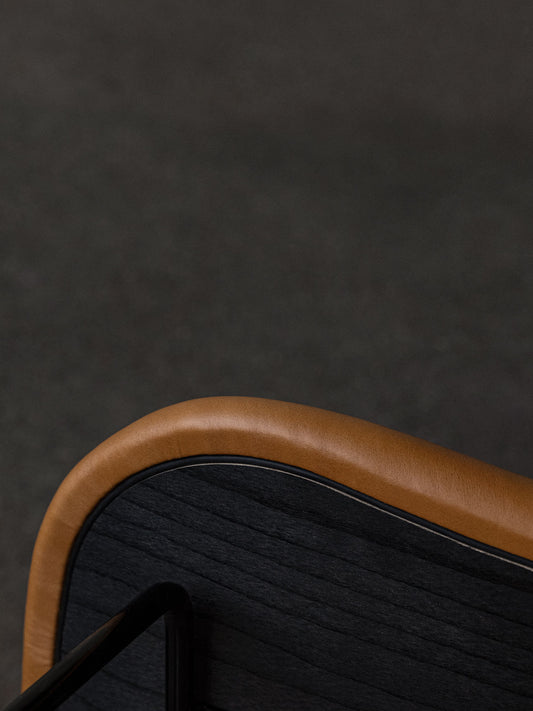 This chrome- and vacuum-tanned, full-grain aniline leather has a waxed surface for an exceptionally soft touch and a glossy finish that highlights its natural texture. Becoming more comfortable over time, it provides a supportive and cosy seating experience and develops a distinctive patina that adds character and uniqueness to each piece of furniture.