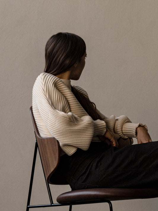 Re-wool is a luxurious upholstery fabric that champions sustainability. Made with recycled wool, it features a woven stitch-like surface with a remarkable colour depth that creates a dynamic visual interplay on furniture surfaces.